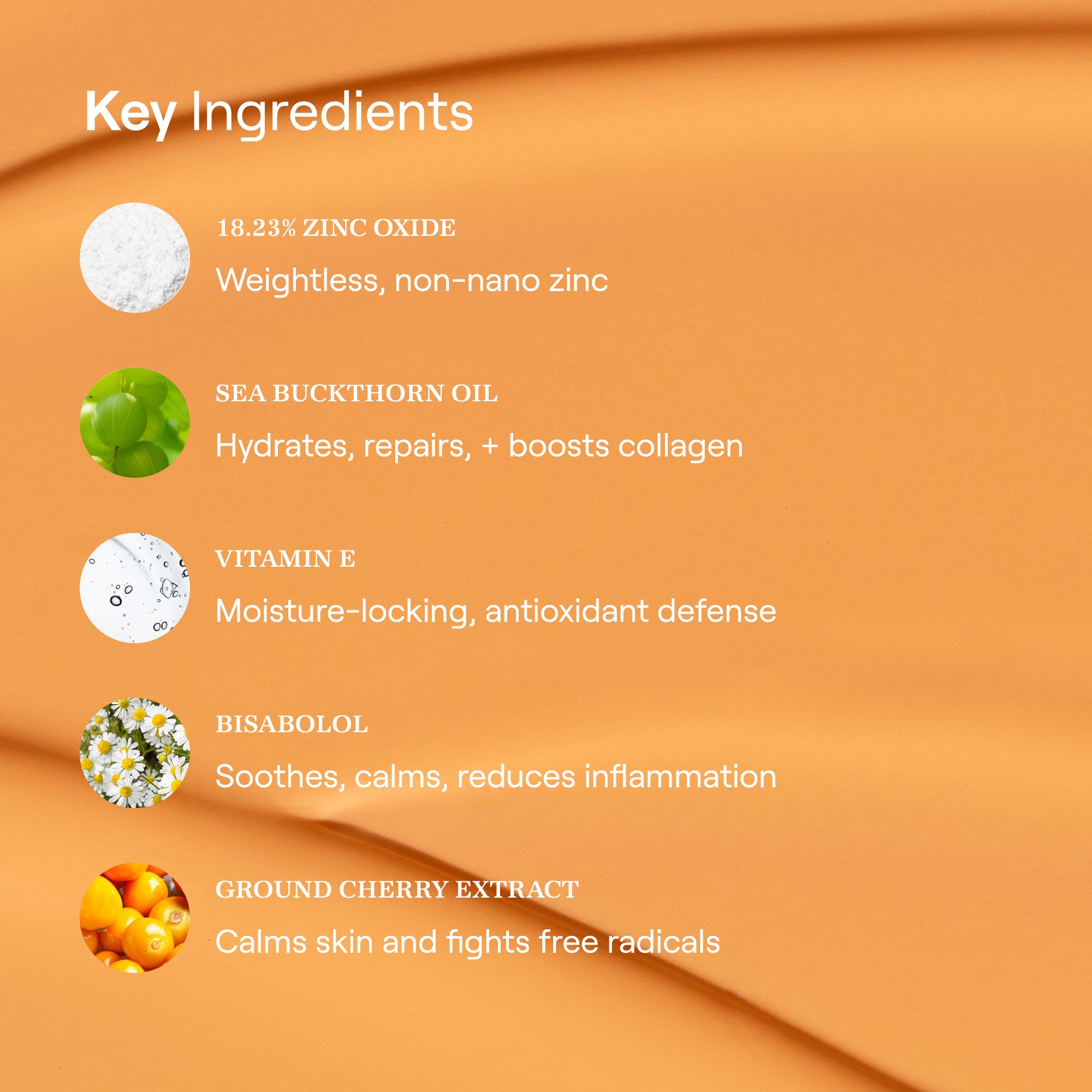 Zinc Oxide 18.25%: Weightless, non-nano zinc. Active Ingredient